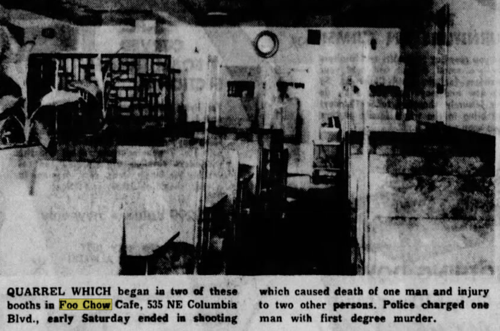 Foo Chow, located at 535 Northeast Columbia, was open by 1955 and closed by 1975. In the years between, the restaurant was spotlighted more for controversy than anything else.